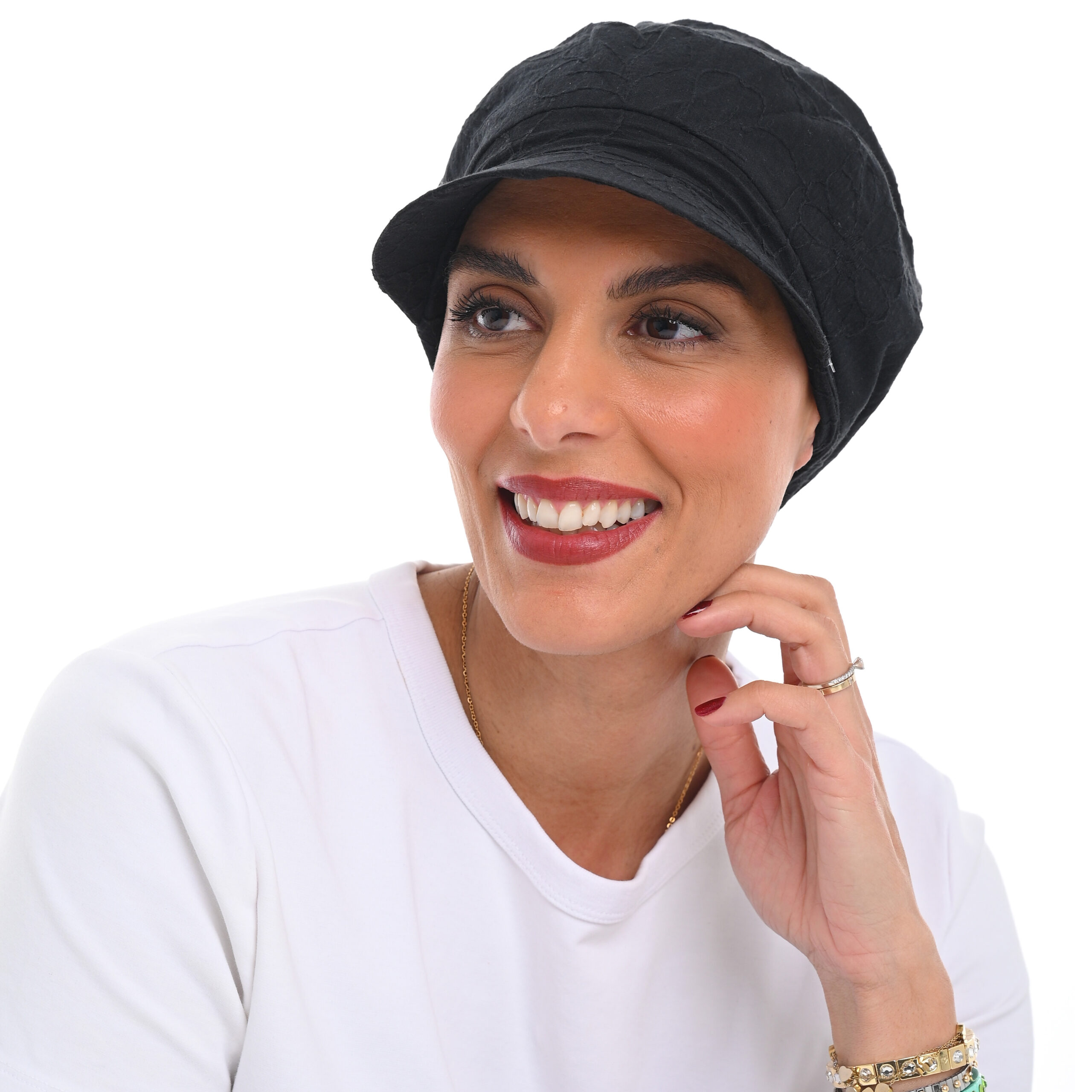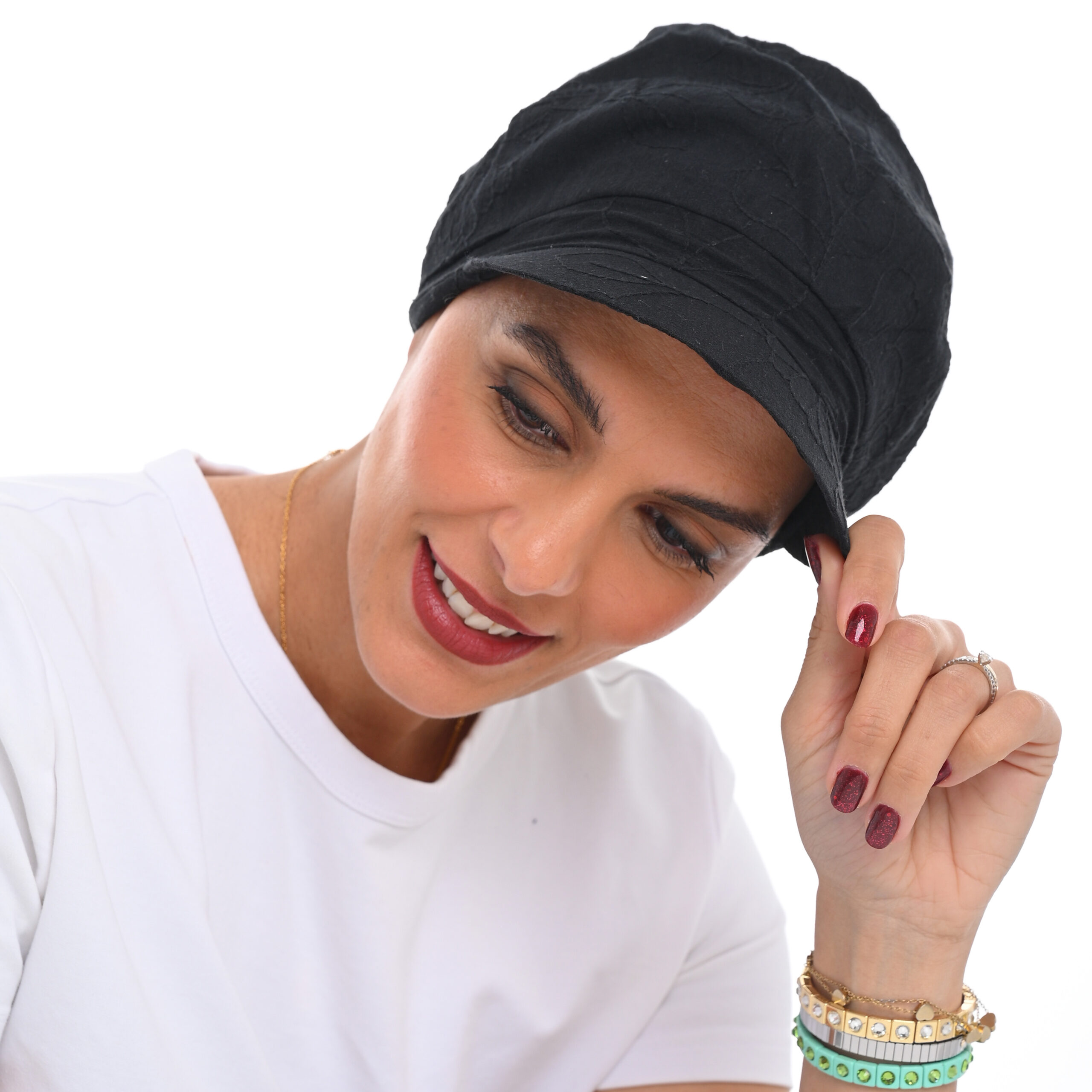 Καθημερινό και στυλάτο καπελάκι με λάστιχο στο πίσω μέρος ενώ ο σχεδιασμός του αγκαλιάζει το κεφάλι με ελαφρότητα, προσθέτοντας σύγχρονη κομψότητα στην καθημερινότητα. Εξωτερικό ύφασμα 100%. ONE SIZE