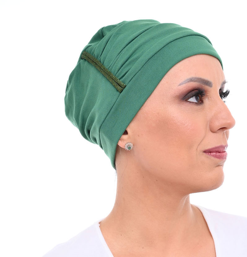 Κομψό σκουφάκι με διακρητική λεπτή γραμμή από ασημοκλωστή στο πλάι. 95% μπαμπού 5% ελαστικό. One Size