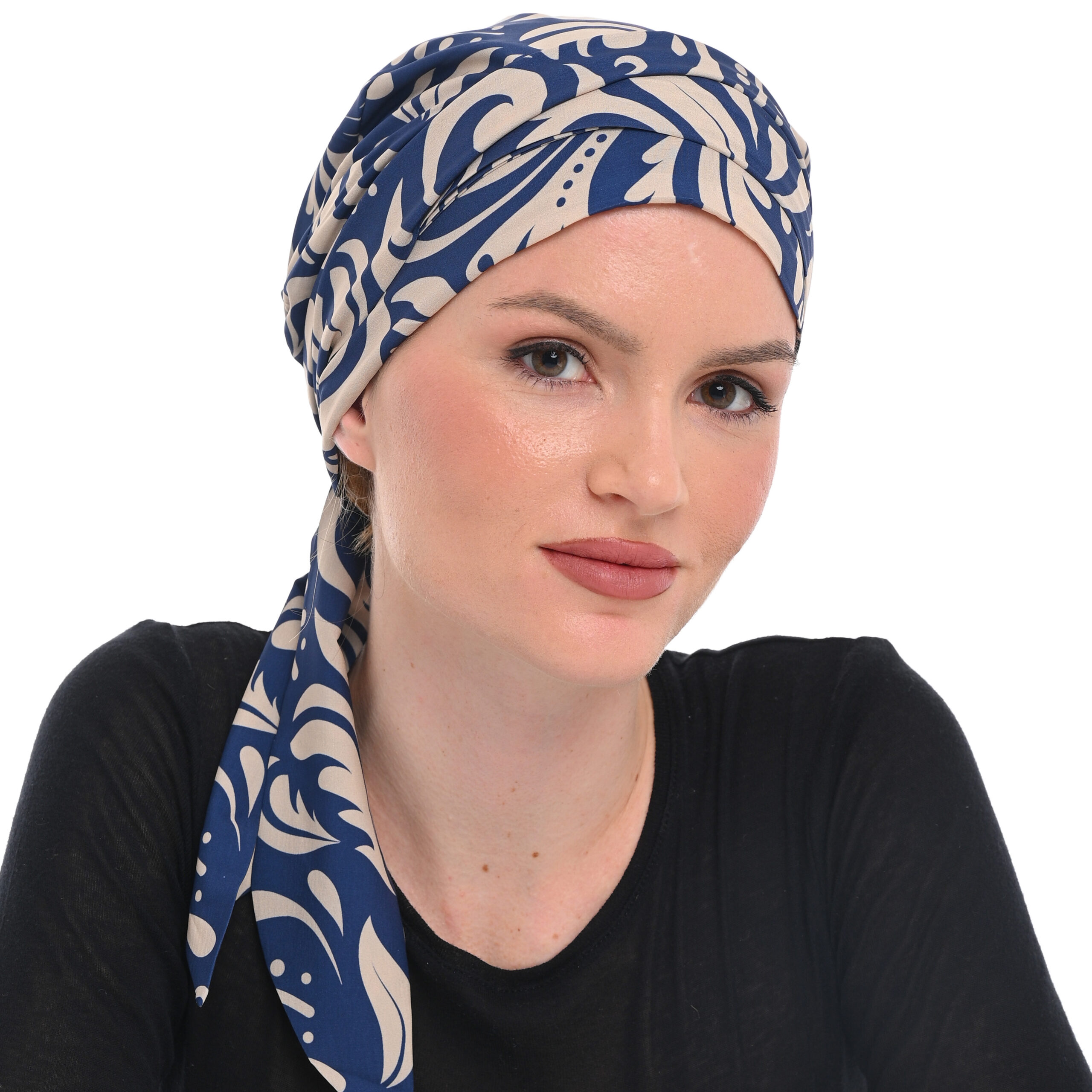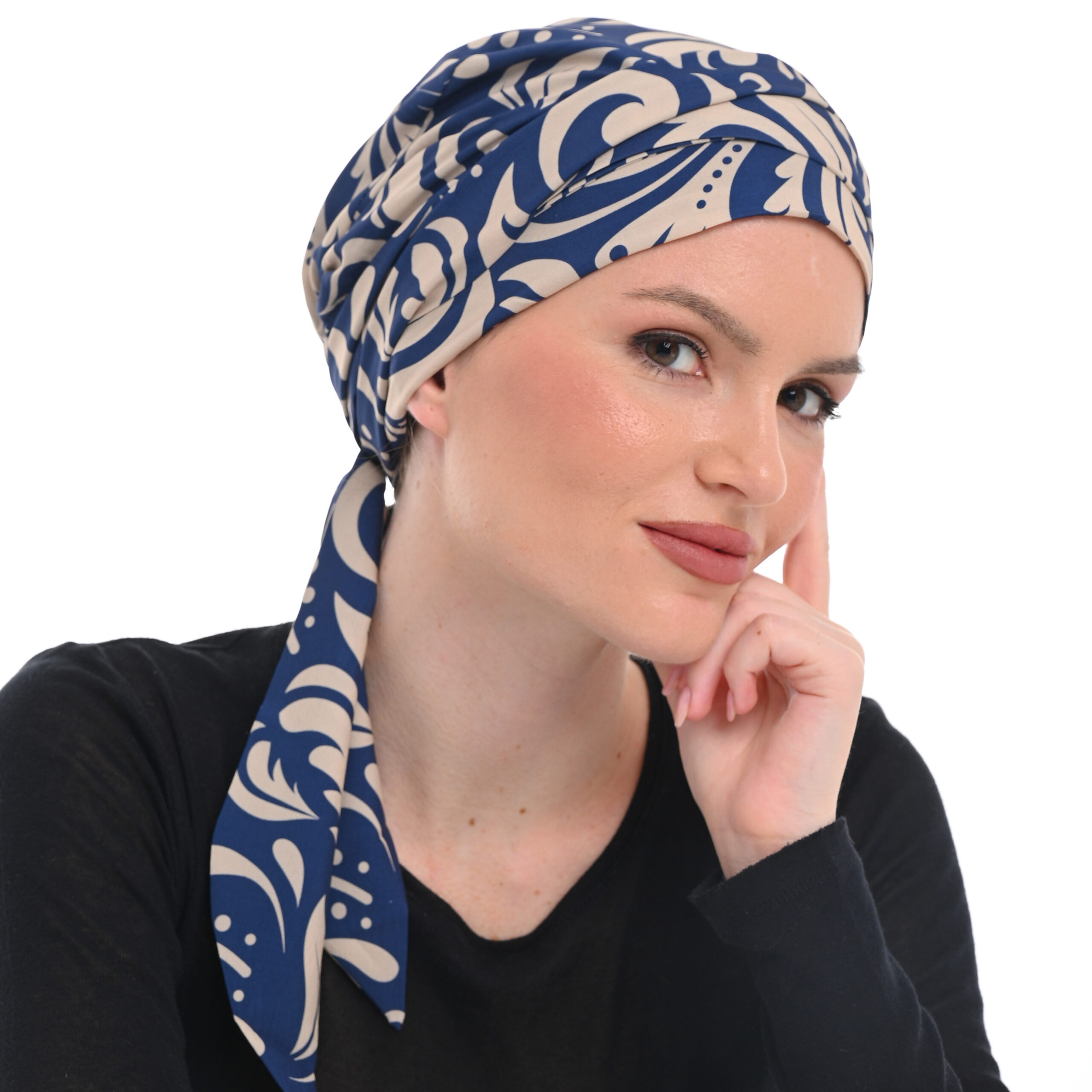 Κομψό και άνετο δετό τυρμπάν με εσωτερική επένδυση 100% βαμβάκι και εξωτερικό ύφασμα 80% πολυέστερ 10% ελαστικό και 10% μετάξι ONE SIZE προσδίδοντας ένα φίνο, αρμονικό αποτέλεσμα που αναδεικνύει το προσωπικό στυλ με διακριτικό αλλά αισθητό τρόπο.